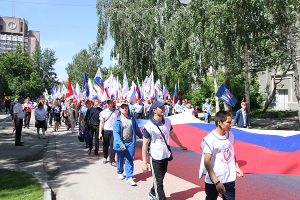 Начались праздничные мероприятия с торжественного шествия жителей города от площади Ленина до Центрального парка Новосибирска. Со сцены Центрального парка новосибирцев и гостей региона с праздником поздравили губернатор Владимир Городецкий, председатель Законодательного собрания Новосибирской области Иван Мороз, мэр города Новосибирска Анатолий Локоть, член Совета Федерации Федерального Собрания РФ Надежда Болтенко, Герой Советского Союза Дмитрий Бакуров и олимпийская чемпионка Ирина Минх. Каждый из выступающих отметил, что День России объединяет людей разных национальностей и профессий, разного вероисповедания и взглядов на жизнь, ведь все они жители нашей огромной страны.